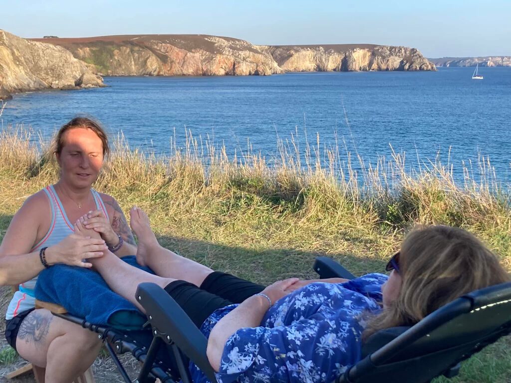 “Bonjour nous avons eu une séance mercredi moi et mon épouse on en est ressorti détendu et libéré de quelques maux dans la journée…il y avait du stress..des problèmes de digestion et de transit ainsi que les cervicales..Ça nous a fait un bien fou…je recommande ces instants de détente et de reconnection avec son corps .merci à Nathalie..Des vacanciers venus se détendre en Bretagne.”